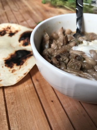 Stir in the chicken stock, and lime juice and bring to a simmer. Add the beans and continue to simmer for 20 more minutes. After 20 minutes of simmering, taste for seasoning, and adjust if necessary.